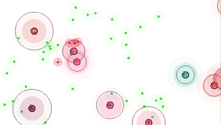 Usando redes neurais e seleção natural, essas criaturas podem tentar encontrar comida e sobreviver. As melhores criaturas (aleatórias) sobrevivem e começam a se repovoar. Nenhum comportamento é codificado, então divirta-se observando essas pequenas criaturas vagando por aí. Clique neles para ver seu DNA e cérebro em funcionamento.