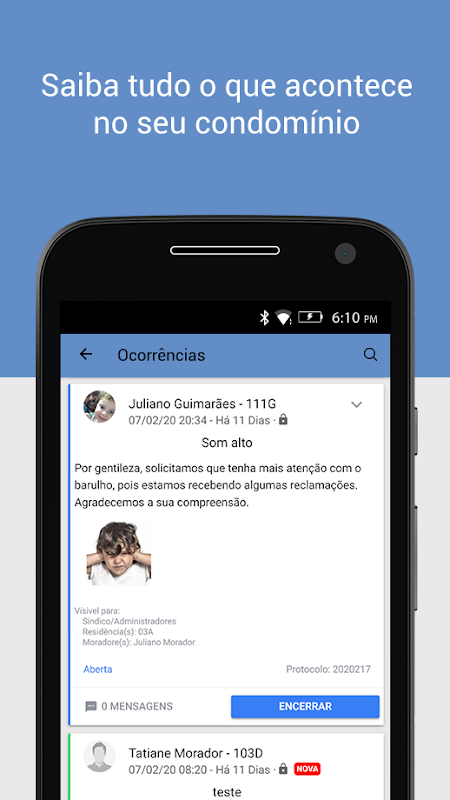 Receba notificações em seu celular de tudo que acontece no seu condomínio.