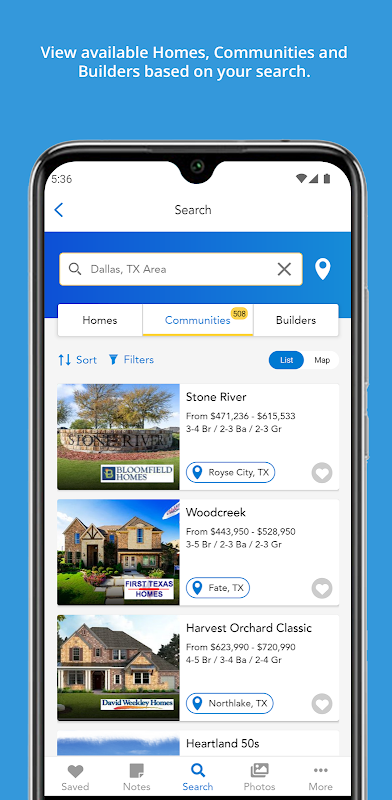 • Navegue rápida e facilmente pelas fotos e detalhes de suas novas casas e comunidades favoritas em um só lugar
