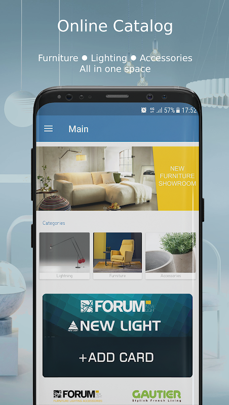 Selecione a facilidade desejada de iluminação, mobiliário, akesuarebi