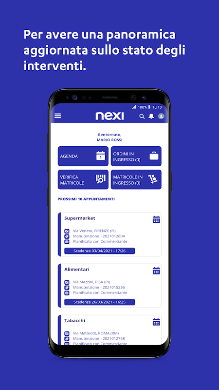 Nexi Tech é o novo aplicativo dedicado aos instaladores de PDV que trabalham em nome da Nexi. O App permite que você gerencie os processos de instalação, manutenção e reposição do PDV, monitore suas atividades e recursos do armazém em tempo real.