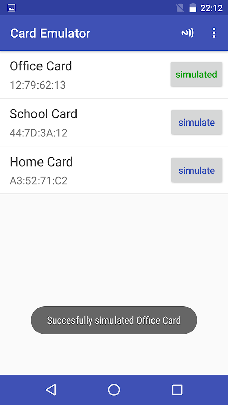 Um simulador de cartão nfc poderoso e gratuito que simula vários tipos de cartões de acesso, cartões de elevador, parte do cartão de fábrica (cartão de fábrica) ou cartão de refeição, parte do cartão de refeição escolar, alguns cartões de bibliotecas e outros cartões IC.