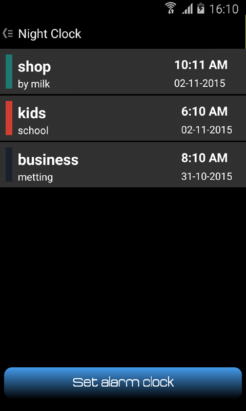 Night Clock displays time in big font with blue color. With this night clock you can see the time at night when is light turned off.