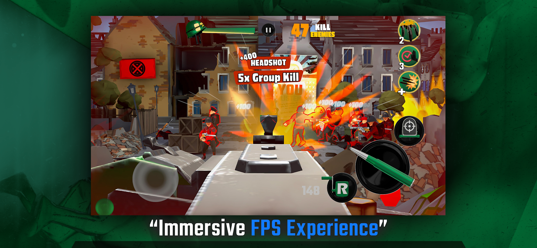 Use habilidade e estratégia enquanto atira loucamente no inimigo para ter a maior pontuação e ser o melhor entre seus amigos. O jogo tem modos de eventos semanais que você pode competir com seus amigos ou ajudar seus amigos diariamente.