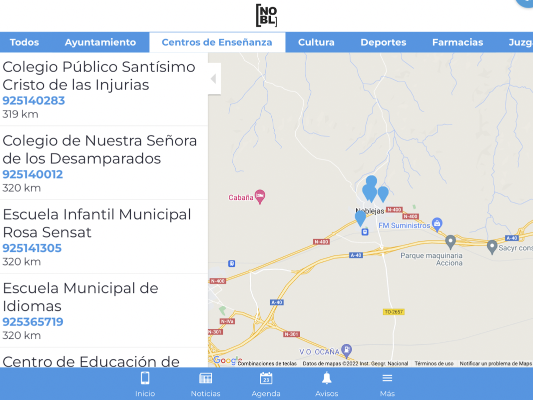 Município de Noblejas. Informações sobre notícias locais, agenda cultural e esportiva, mapa de ruas e geolocalizador, telefones, horários de ônibus, notificações...