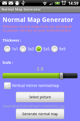 Uma ferramenta rápida e fácil de gerar mapas normais de qualquer imagem ou fotografia usando seu dispositivo Android.