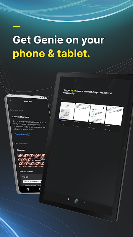 Infelizmente, os criminosos continuam encontrando novas maneiras de enganar você. O Genie é alimentado por IA avançada, portanto, quanto mais você o usa, mais inteligente ele se torna na detecção de novos golpes. Quanto mais mensagens você carrega, mais ela evolui, mantendo você ainda mais seguro no futuro.