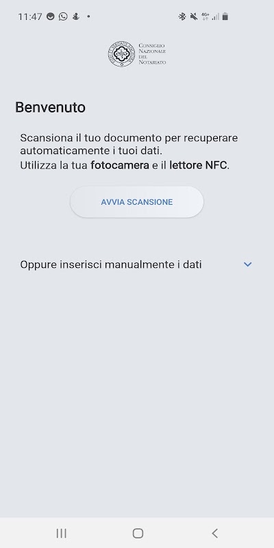 Com o NotaryID você pode extrair, com total autonomia, os dados pessoais diretamente da Carteira de Identidade Eletrônica (CIE) ou do Passaporte Eletrônico (PE). Ao digitalizar o documento - utilizando a câmara e o leitor NFC do smartphone - a aplicação consegue adquirir os dados pessoais contidos no CIE e no PE e enviá-los ao notário que os solicita para os usos permitidos por lei.