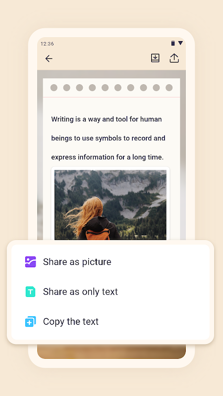 ⭐️ Support note content to generate pictures and save them to albums or share them directly. The picture is very nice, you will love it.
