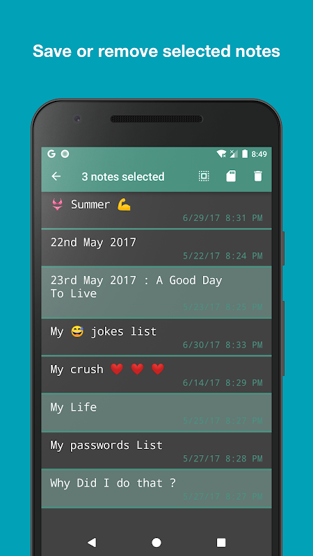 ✓ Delete notes that are no longer interesting to you and make a room for new personal , private notes and information to write down and secure with the password protection.