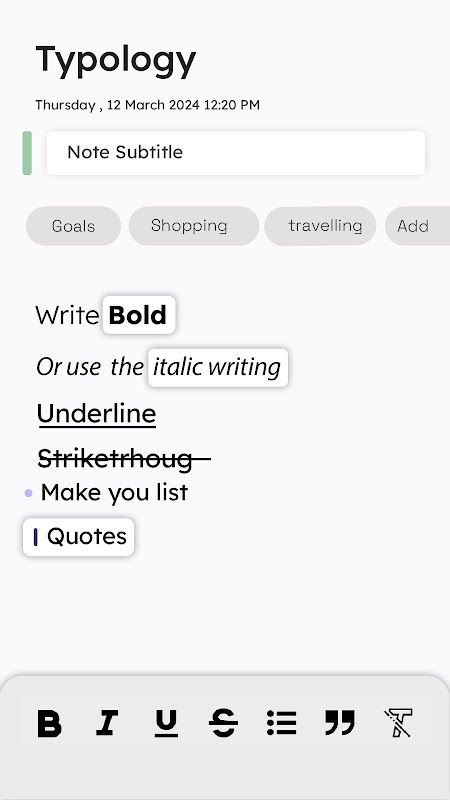 O aplicativo de anotações, uma ferramenta básica de anotações projetada para ajudá-lo a capturar seus pensamentos e acompanhar suas ideias com facilidade. Seja você um estudante, um profissional ou qualquer pessoa que goste de escrever, este aplicativo é perfeito para você!