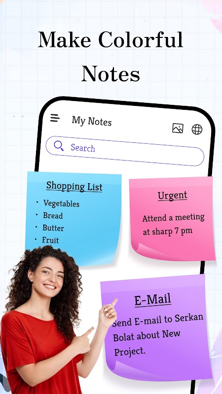 O bom aplicativo de notas suporta notas coloridas. Escreva notas com cores diferentes para organizar facilmente seu aplicativo de notas de lista. Classificar e filtrar notas por cor ajudará a encontrar seu alvo com mais rapidez.