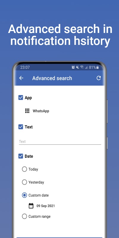 → Notification filter: You can choose to store of all apps notifications or just selected ones..