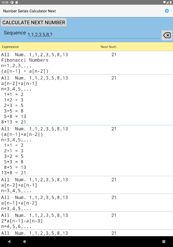 Informações sobre Number Series Calculator Next APK