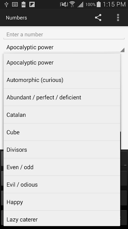 Numbers is an application to view/check various properties of a number. At present here a list of what's available: