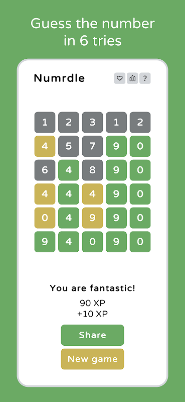 Numrdle é um jogo divertido, legal e casual em que você adivinha um número de 5 dígitos.