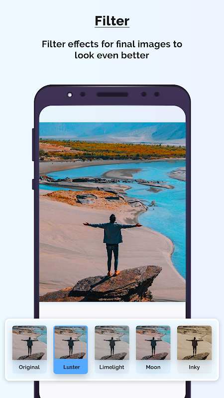 Basta selecionar a foto, cortar a imagem, escovar a imagem que você deseja remover, aplicar as alterações para remover automaticamente a parte indesejada e depois aplicar filtros à imagem de saída, salvar e compartilhar com sua família e amigos nas mídias sociais.