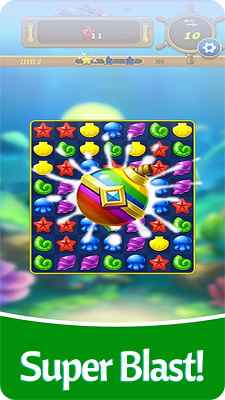Troque e combine para explodir a fim de limpar o tabuleiro do jogo no Ocean Blast: o novo jogo de combinar 3 completamente grátis!