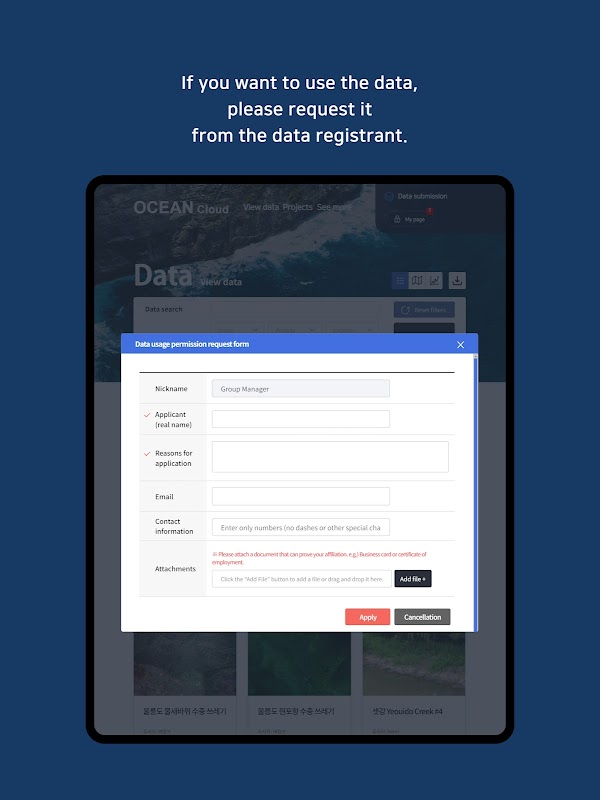 Ao analisar vários dados marinhos submetidos diretamente pelos cidadãos, ajuda a compreender o estado atual dos oceanos da Coreia do Sul. Este portal incentiva os cidadãos a terem um maior interesse pelos nossos oceanos e fornece orientações para o desenvolvimento de políticas destinadas à proteção e gestão marinha.