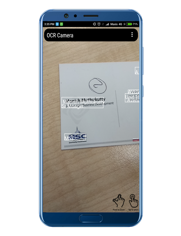 - Várias operações usando o texto digitalizado como ler o texto, copiar, traduzir, compartilhar e Google.
