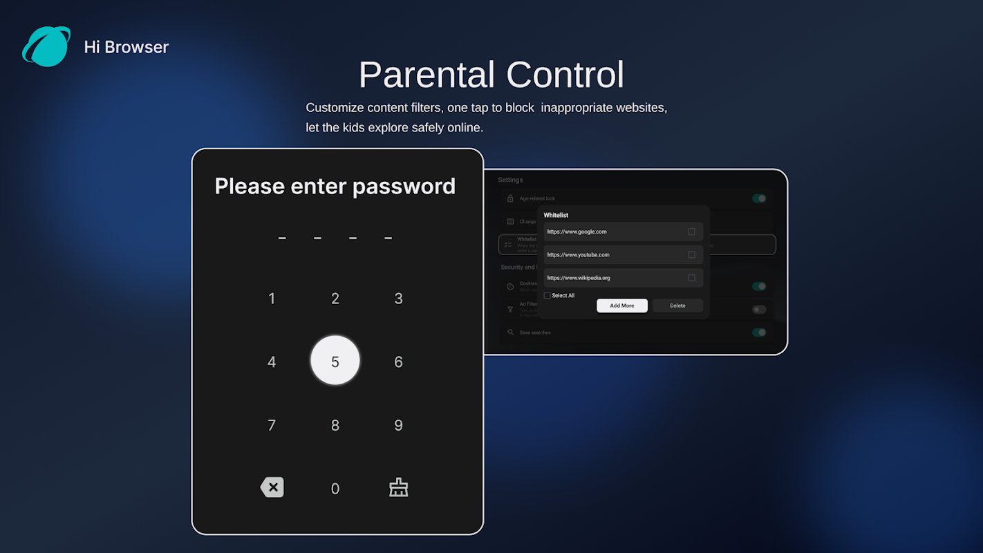 - Controle parental: Restrinja conteúdo/sites inadequados para uma experiência de navegação segura para toda a família.