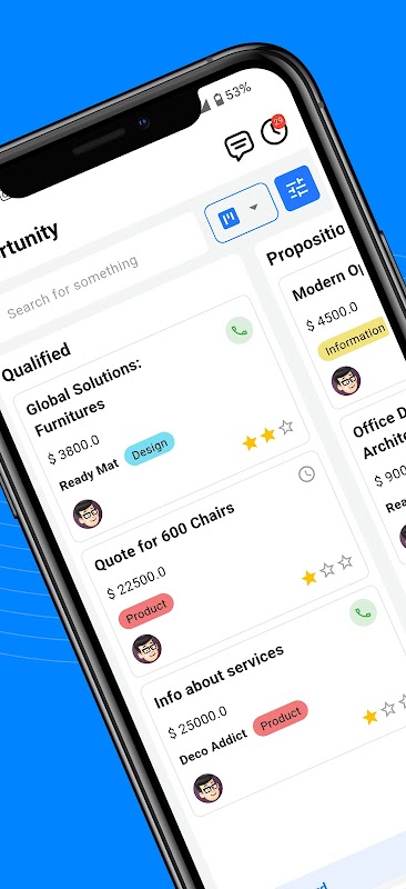 Gerencie leads do Odoo CRM v17 e v18 em qualquer lugar com este cliente móvel.