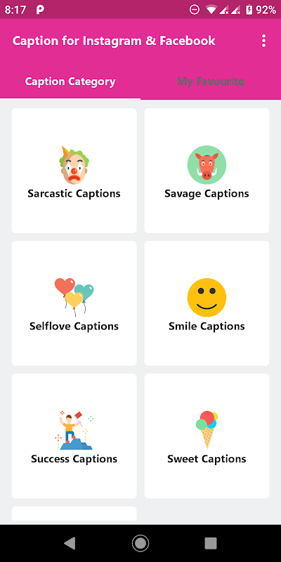 Save your favorite caption for later use, list out your best quotes, directly post to instagram, facebook, copy feature.