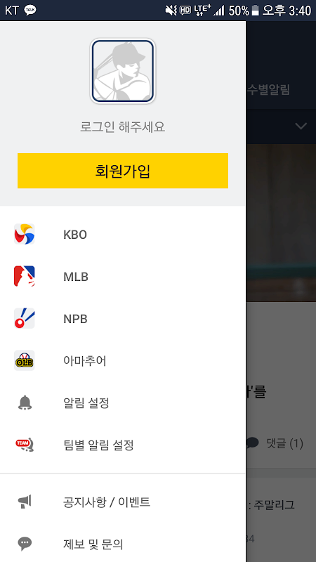 #1 Baseball Magazine, OLB – Opinion Leader of Baseball 어플리케이션 기능별 안내사항