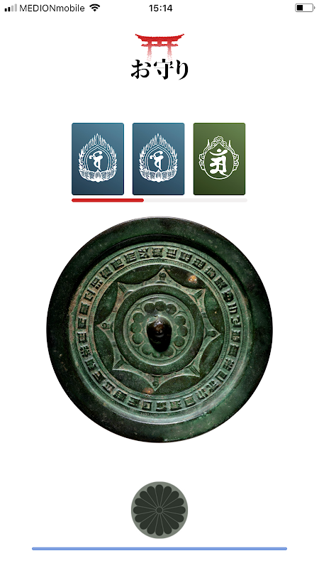 アプリでお守りを得るにはディスクに触れるだけでOK 。 運良くばお守りはあなたのもの。