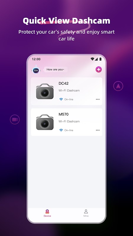 Este aplicativo funciona com a câmera de painel veicular. Ele é usado para reproduzir e rever vídeos gravados pela câmera. Além disso, pode sincronizar dados da câmera, como vídeos, imagens e GPS, exibi-los no celular e compartilhar imagens em redes sociais.