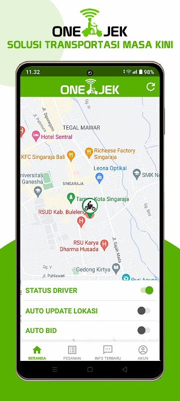 Aplicativo de driver on-line Ojek Onejek da BaliMobi