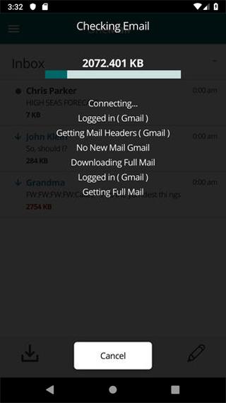 O OneMail adota uma abordagem pouco convencional para verificar sua conta de e-mail por meio de conexões lentas ou caras. Quando você usa o OneMail para verificar seu e-mail, ele disca automaticamente através do seu link de satélite e baixa o De, o Assunto e o Tamanho dos e-mails que estão esperando por você em apenas alguns segundos. Em seguida, ele se desconecta automaticamente do seu telefone via satélite para que você não gaste tempo de antena desnecessário enquanto revisa essas informações resumidas. Agora que você está off-line, examine a lista de e-mails em espera do OneMail para ver se algum deles é urgente ou de interesse particular, deslize ou toque nessas mensagens para destacá-las e reconecte-se ao OneMail. Desta vez, o OneMail acessará e baixará rapidamente essas mensagens antes de se desconectar novamente. À vontade, agora você pode revisar livremente a mensagem completa e responder a esses e-mails antes de se reconectar para enviar respostas e/ou procurar novos e-mails.