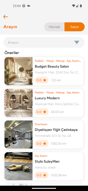 Perfis de salão, fotos, descrições de serviços e informações sobre preços