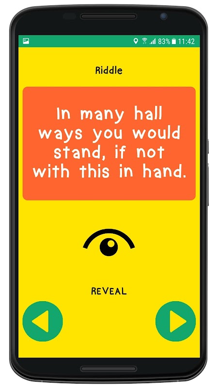 It contains tons of riddles that will boost up your brain. Some are easy, some are tough! Some will rhyme and some will eat up your brains but don't give up because you can always reveal the answer by tapping on the nice animated eye.