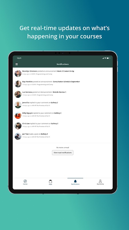 Acompanhar o seu progresso, visualizar acontecimentos do curso e manter-se atualizado com as notificações de cursos que você está inscrito. Cada claro que você completa irá fornecer-lhe novas habilidades, potenciais oportunidades de progressão na carreira, e conectá-lo a mais e mais pessoas que compartilham seus interesses.