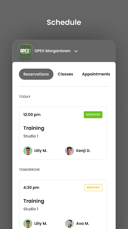 Reservas de aulas e gerenciamento de contas para membros do OPEX Morgantown