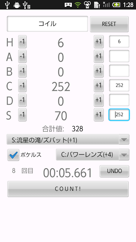 (カウントからの経過時間とカウント回数、UNDO機能)