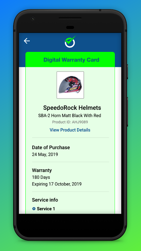 Cartão de garantia digital no aplicativo.