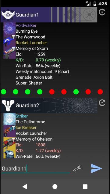 Den Namen eines Gegners eingeben um die Charaktere und Stats des gegnerischen Fireteams zu sehen.