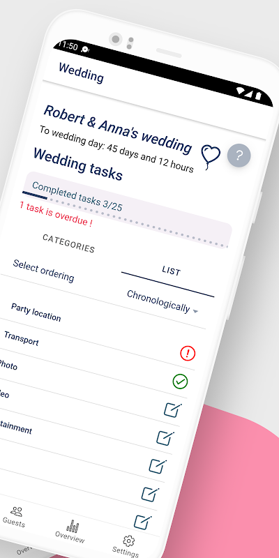 Planeje seu casamento hoje! Our Day: Wedding Planner é o aplicativo ideal para planejar casamentos, não importa quais sejam suas necessidades.