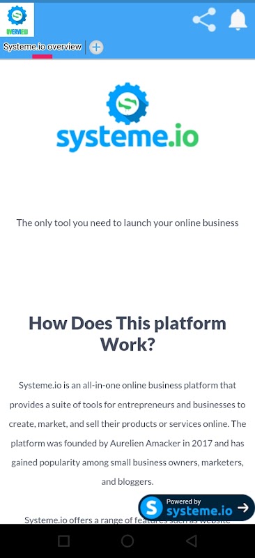 O Systeme.io é uma plataforma de negócios on-line completa que fornece um conjunto de ferramentas para empreendedores e empresas criarem, comercializarem e venderem seus produtos ou serviços on-line. A plataforma foi fundada por Aurelien Amacker em 2017 e ganhou popularidade entre pequenos empresários, profissionais de marketing e blogueiros.
