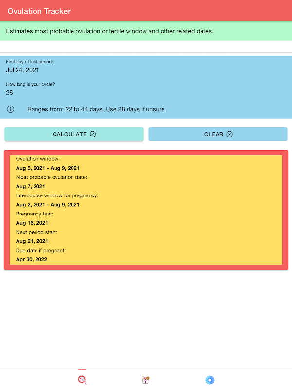 🔸 Avaliação rápida da janela de ovulação, data mais provável de ovulação e janela de relação sexual para gravidez
