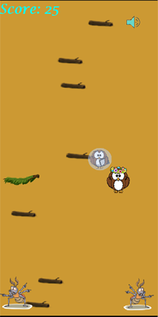 Owlfred está tentando impressionar sua namorada, Flora. Quando ele a alcança, ele ganha 10 pontos e é colocado em uma bolha que lhe permite pular mais alto por um curto período de tempo. Se a águia o pegar, ele perde 5 pontos. A lagarta dá a ele força de salto extra. Cuidado com a plataforma fictícia. Você vai cair direto por ela.