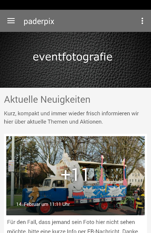 paderpix ist jetzt auch als App auf dem Smartphone verfügbar! Ob Fotos, Veranstaltungen, Termine, Aktionen oder Informationen - die App benachrichtigt (auf Wunsch) sofort, wenn es etwas Neues gibt. Aber auch für den Kontakt zu uns ist gesorgt. Sie können direkt aus der App heraus Kontakt mit paderpix aufnehmen und Ihre Antwort direkt erhalten, incl. Gesprächsverlauf! Einfach per Knopfdruck!