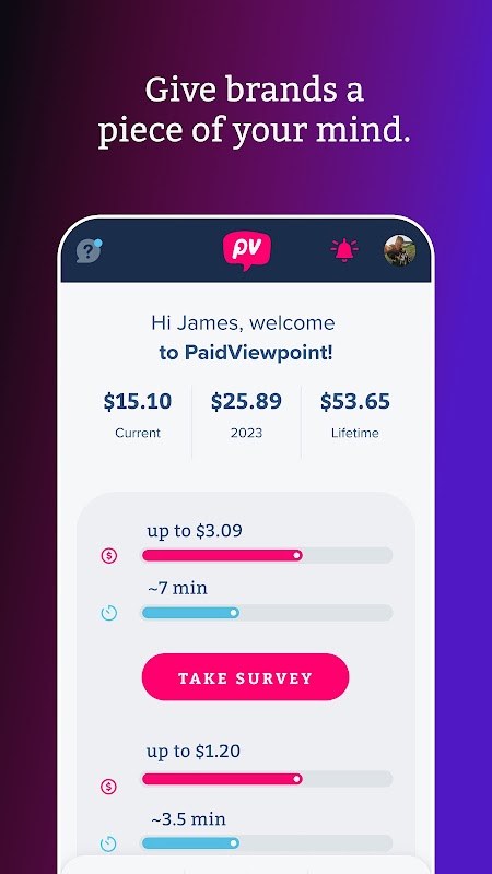 Bem-vindo ao PaidViewpoint – uma das comunidades de insights do consumidor mais bem avaliadas em operação desde 2011. Oferecemos a realização de pesquisas curtas em troca de dinheiro via PayPal. Sem pontos, sem ingressos, apenas dinheiro direto por um pouco do seu tempo.