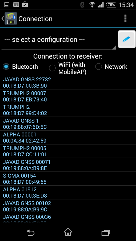 The application is designed to pair or unpair JAVAD HPTxxxBT Bluetooth radios with JAVAD GNSS receivers like TRIUMPH-2 or TRIUMPH-1. After installation just connect modem with cable to microUSB connector of your Android device (standard USB-to-microUSB cable is required) runs the application. Receiver is connected with Bluetooth or WiFi.