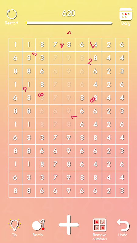 As regras do jogo são simples: você deve remover todos os números do campo de jogo, removendo pares de dígitos idênticos ou pares que totalizem dez. Se não houver combinações para remover, todos os números restantes são escritos a partir da última célula. E assim por diante até que todos os números sejam removidos do campo.