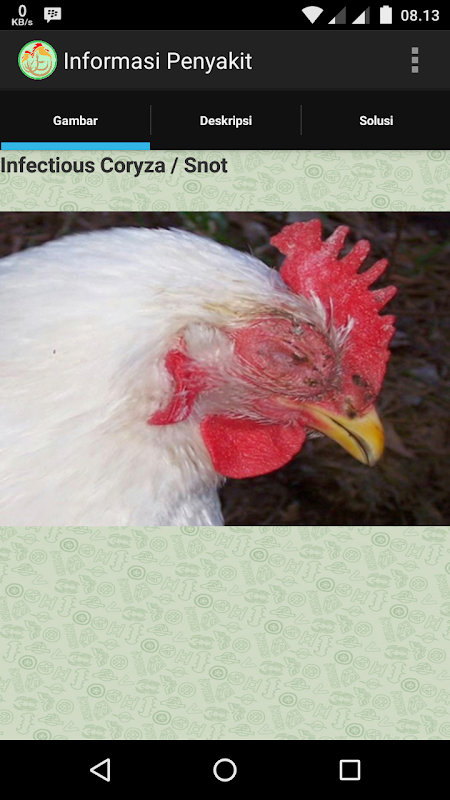 Selain bisa mendiagnosa penyakit ayam, aplikasi ini juga dapat menyediakan informasi data penyakit ayam penyebab bakteri.