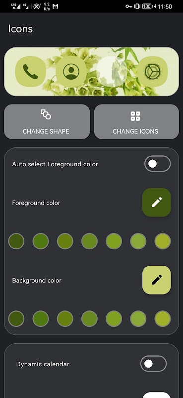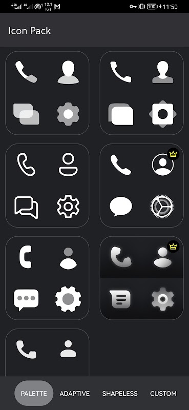 Explore uma vasta seleção de pacotes de ícones adaptáveis e sem forma ou importe o seu próprio! Substitua ícones individuais ou renove conjuntos inteiros. Com o Palette Theme Maker, as possibilidades são infinitas.