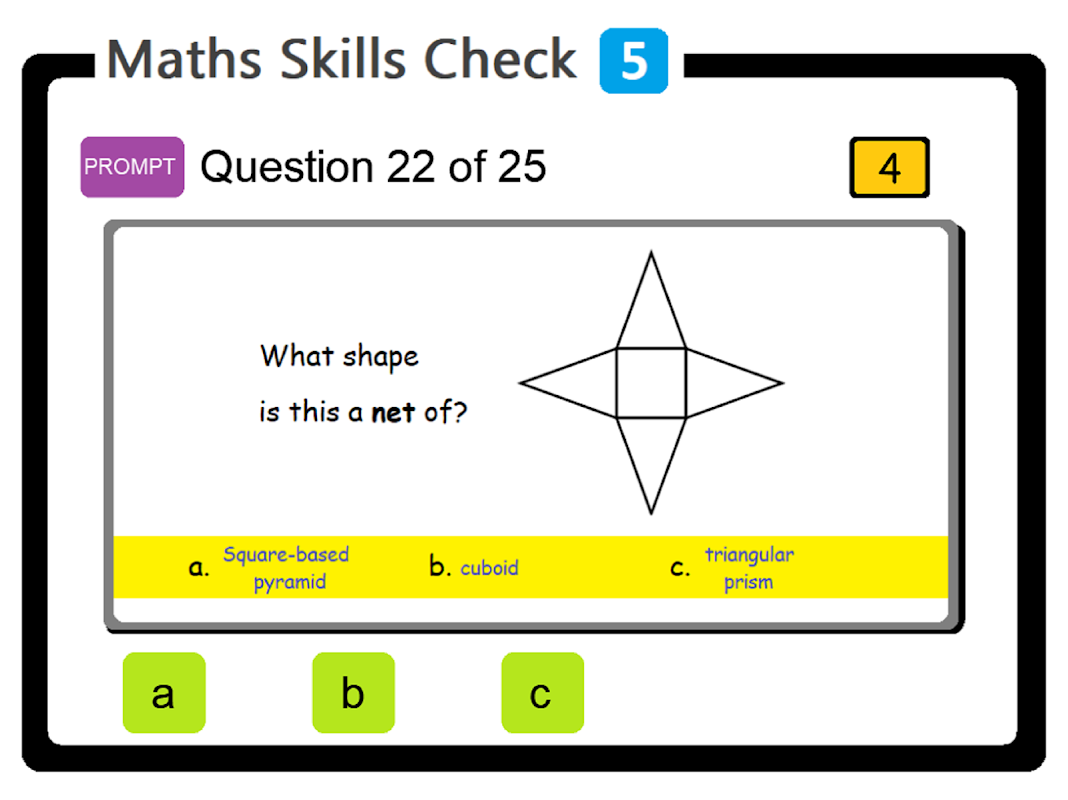 The approach that the teacher uses remains basically the same as you've been using with the paper version because it's the approach that makes it work. The pupils access their app...they go to weekly skills check one if it's week one; two if it’s week two etc. The pupils then see question one and they work out the answer and select from a multiple choice of up to five answers.